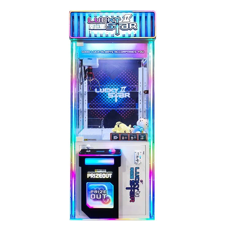 The Lucky Star 2 claw machine features a dazzling light show that triggers when any machine wins, creating a vibrant atmosphere. Operators can customize the machine with different prizes for players to grab, such as figurines, 7-9 inch plush toys, and dolls. Users must rely on their skills to win the prizes they want, making it a claw machine suitable for all ages.